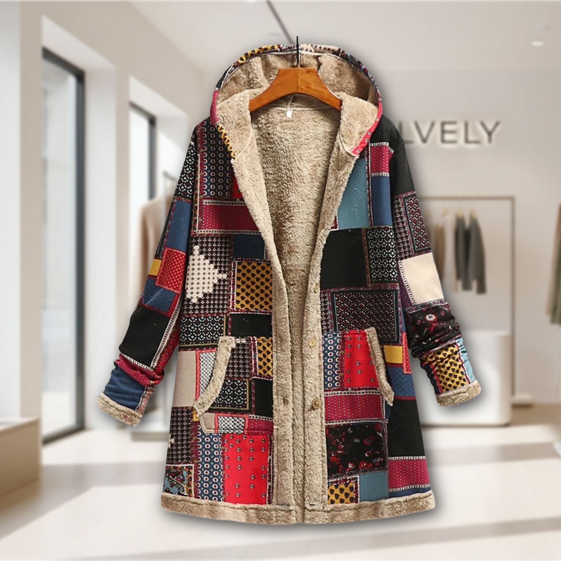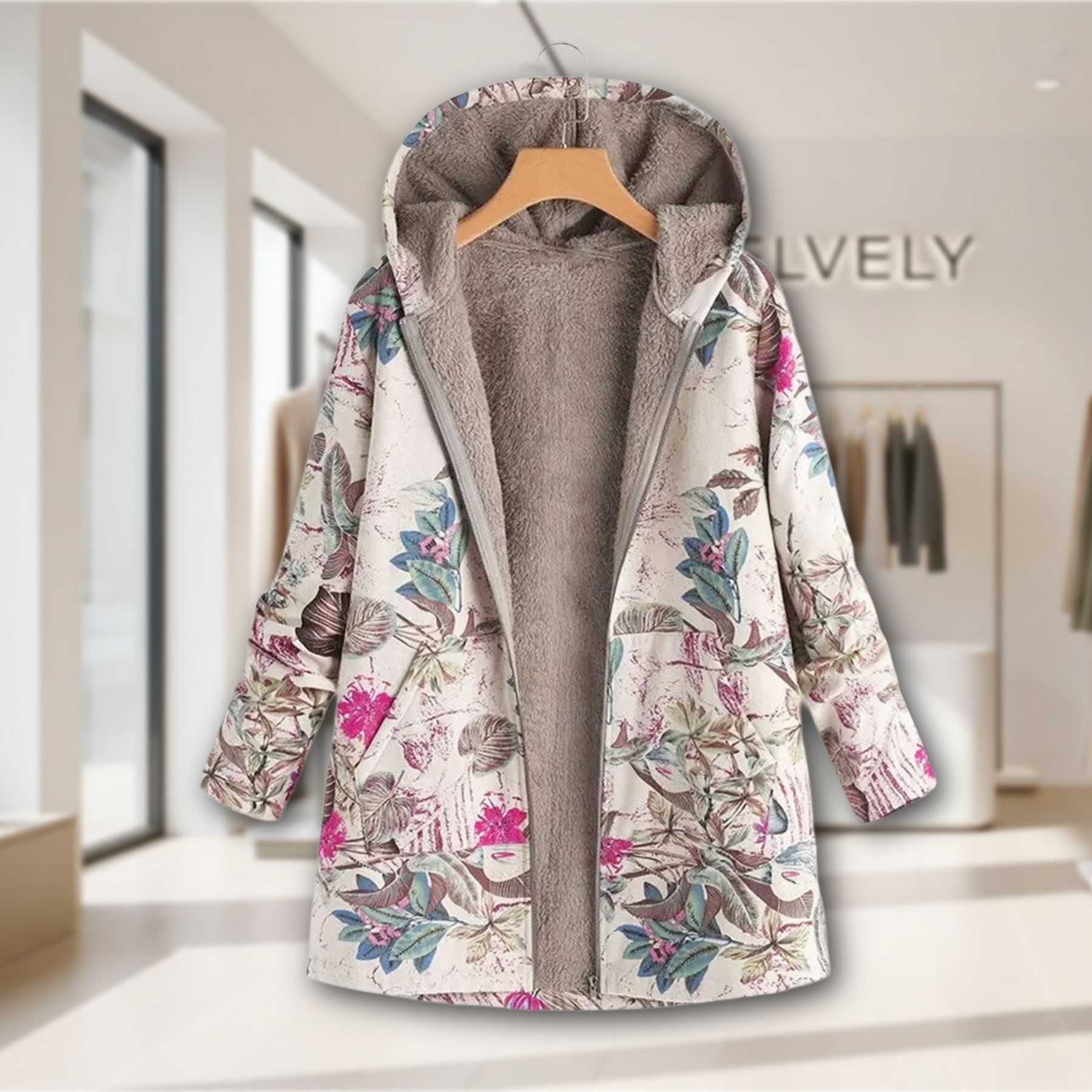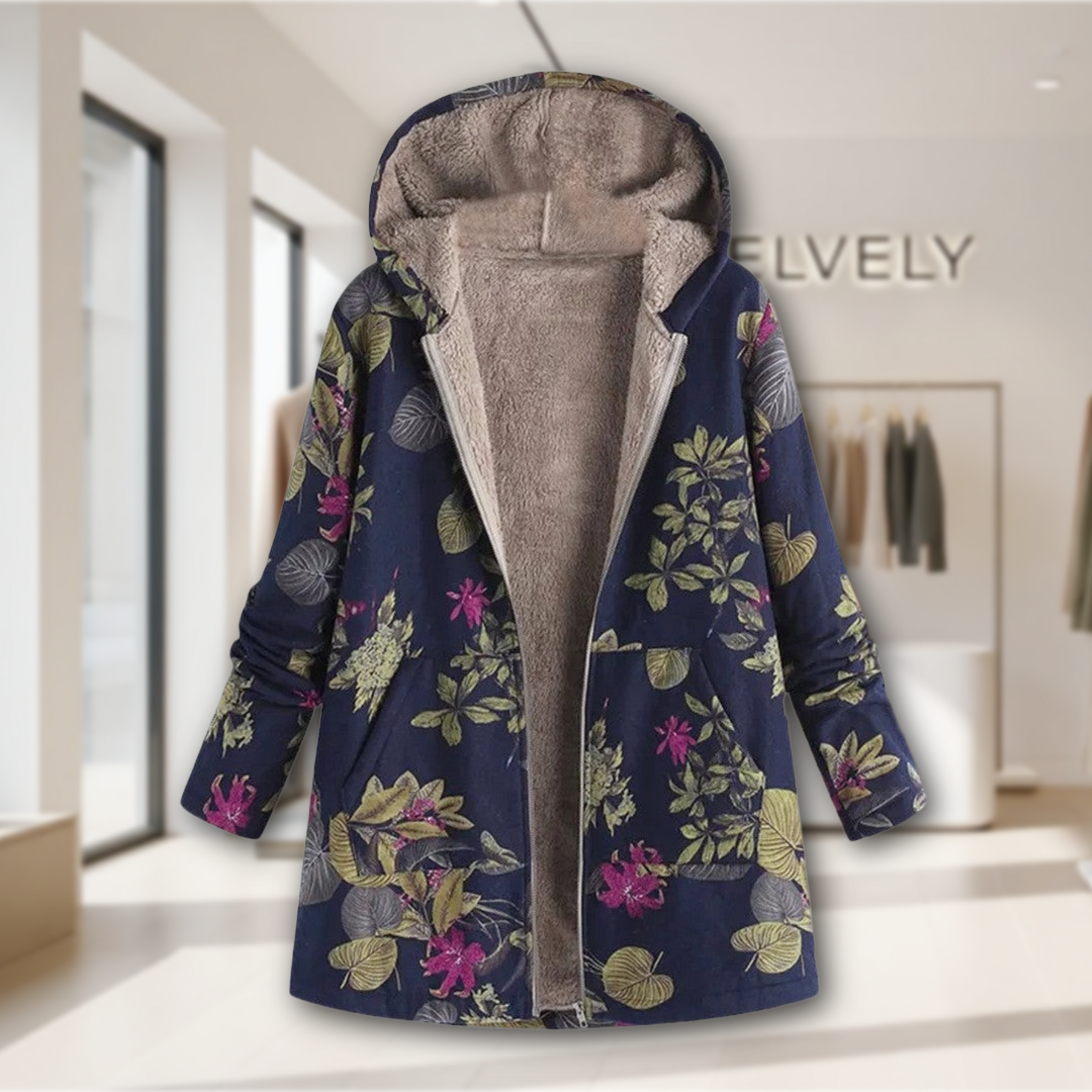 The Sade - Fleece Lined Hooded Coat brings cosy comfort to your wardrobe with its warm construction and versatile design. The relaxed fit offers flattering coverage while allowing easy layering, making it perfect for daily wear and polished looks. Designed to provide reliable warmth, this coat combines practical features like a hood and spacious pockets with fashionable floral patterning for a touch of modern elegance.